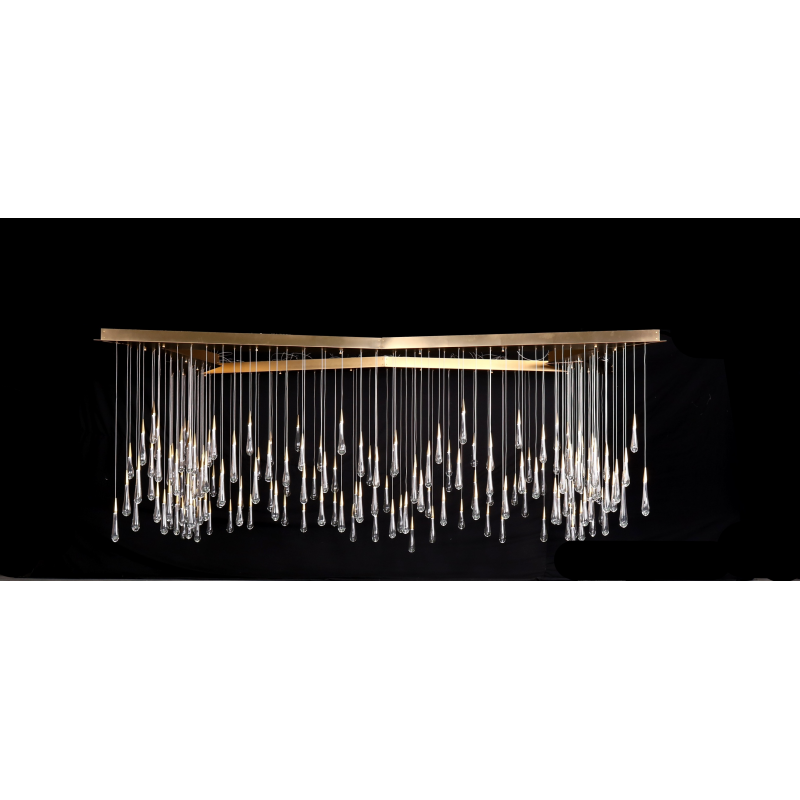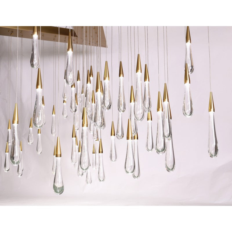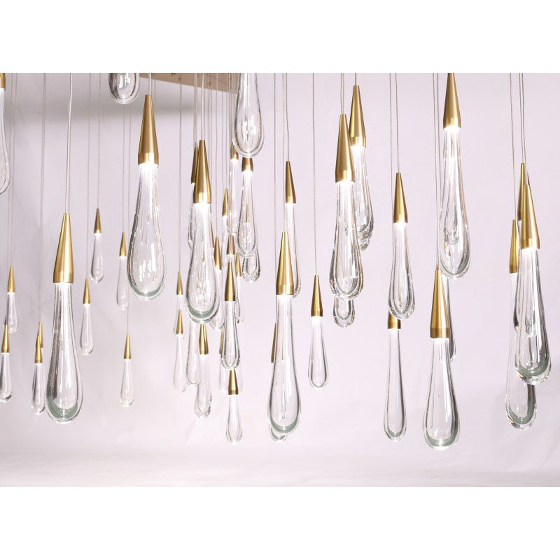 AK4002X "The Pour" skinny rain clear hand blown glass chandelier