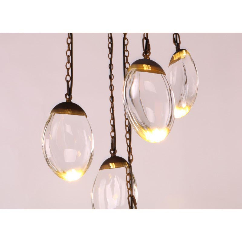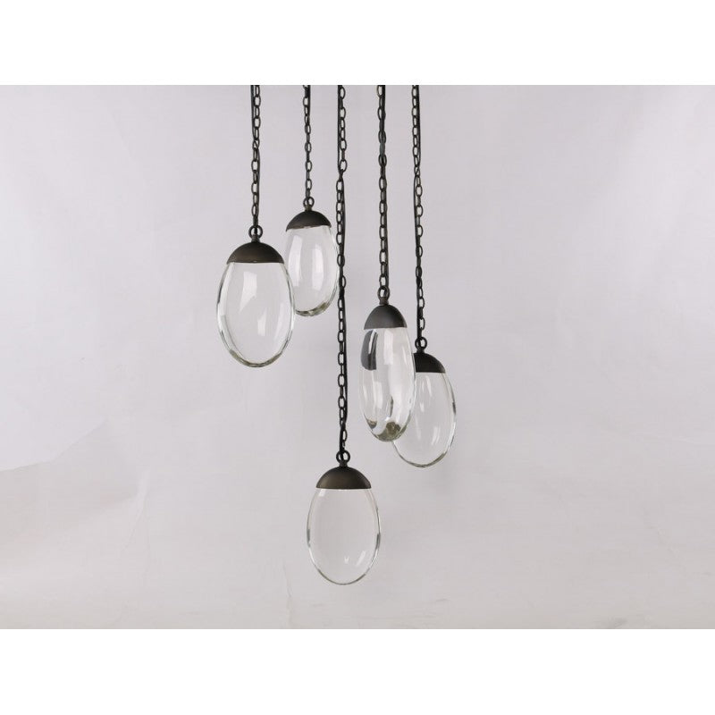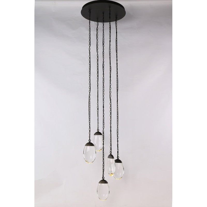 Subdued yet striking, the Pebble is little more than a transparent ellipse topped with a bronze cap and suspended from a simple chain. The light’s ethereal beauty stems from the soft halo of light produced by an optical illusion. In fact, the elliptical glass gently bends the light, making it appear as if the source is located at the bottom of the glass. Powered by LED technology, the Pebble is available as a single pendant, as a linear trio or as a cluster of five. In addition to the patinated bronze option, the cap and chain are also available in a satin nickel finish.