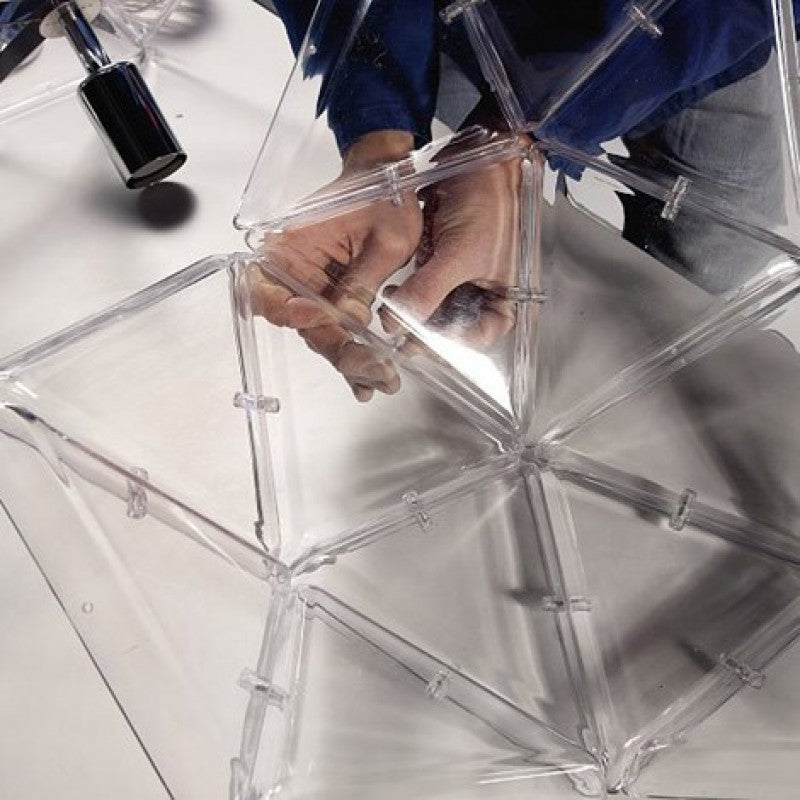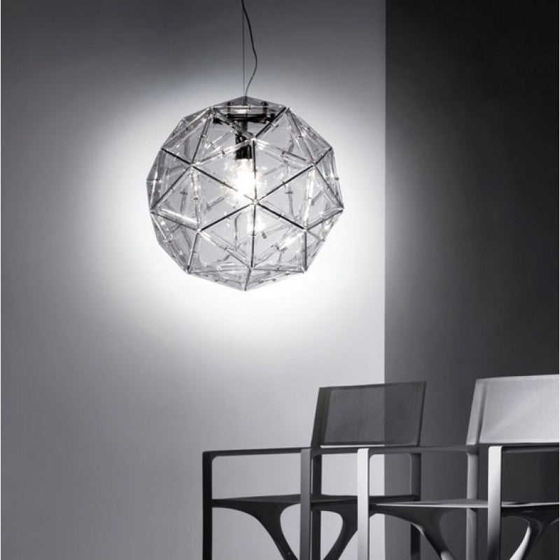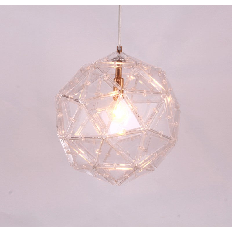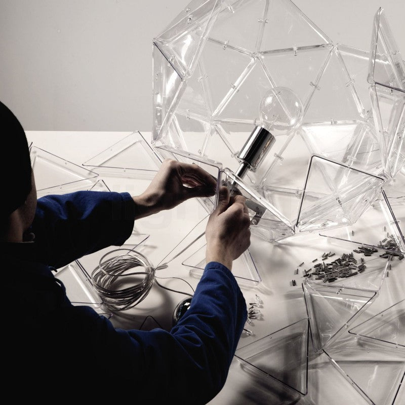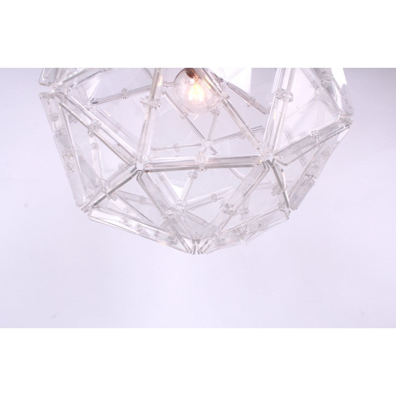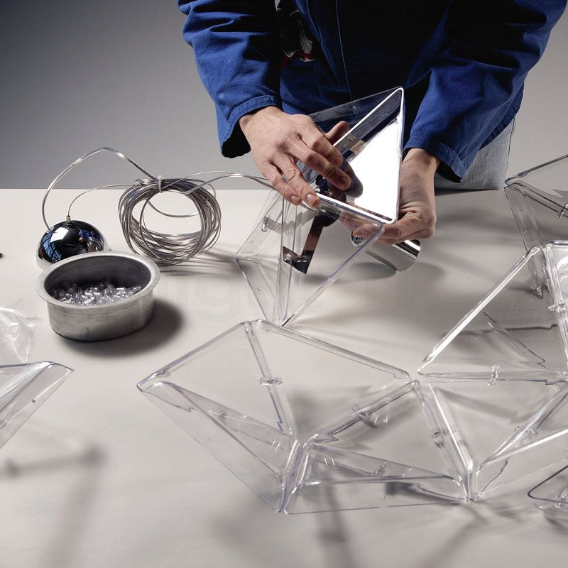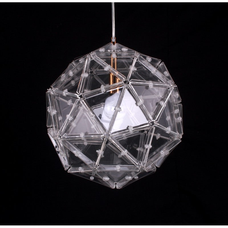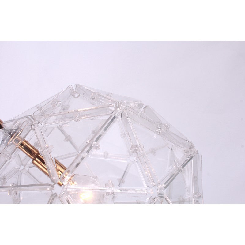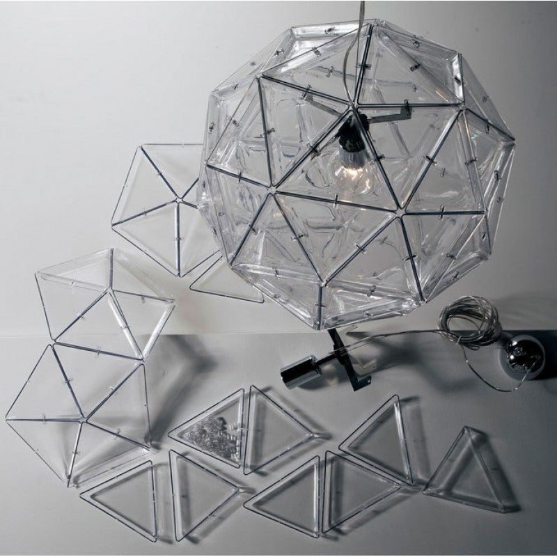 When it comes to pieces full of statement-making pizazz and subtle modern shapes, this is not one to miss. The geometric layout and fun, clear simplicity make this chandelier one to fit many settings flawlessly. Its stainless-steel frame is covered from top to bottom in transparent polycarbonate triangles that bond together in a gorgeous fashion, delivering to you only the hippest and chic pendant lamp you can imagine. In addition, like all our pieces, this chandelier is also available in any finish you'd like, ensuring the piece fits your space and your preferences equally.