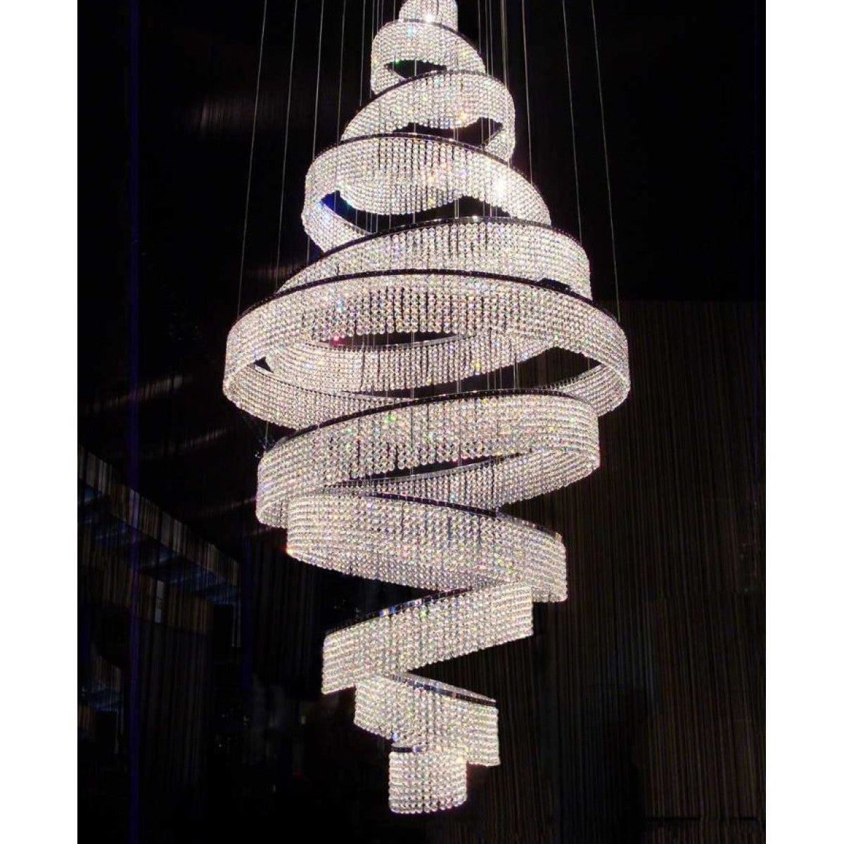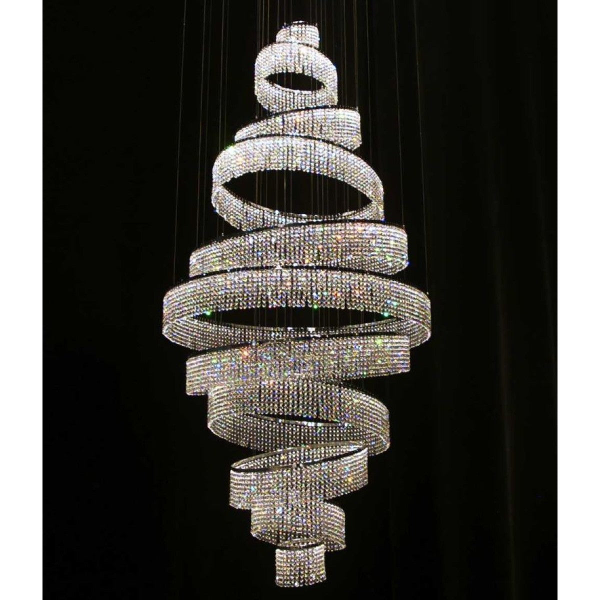 Spinning circles with strings of 14mm crystal beads, suspended from the ceiling and lit from above, forming a sparkling vortex. Fusing the eye-catching blend of glamorous charm with geometric modern feel, we have this AM8847D model for you. It features an array of lights that emanate beautifully through its LED rainbow crystal laser cut high-quality beats. The piece is 3-different shaped ring fixtures that are angled in varying degrees to infuse the ultra-eye catching and luxurious feel. This piece would truly be treasured in any place it is installed and put to use. Let this fixture be the chandelier they can't stop talking At Alan Mizrahi Lighting Design, we supply and manufacturer many highly sought after designer pieces, All Chandelier can be customized by a number of lights, style, color and size to meet your specific needs. Every chandelier can also be combined with a matching table lamp and wall lamp to accomplish the best room design. Our company provides collections that can make all your project dreams come true.